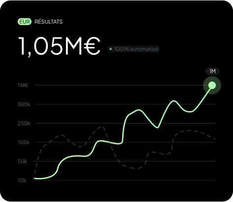 Grâce à elle, (et après des mois sans aucune vente sur mon premier business), j‘ai atteint l‘hypercroissance et généré +1,000,000€ de chiffre d‘affaires, en automatique, en moins de 18 mois, avec 0 salarié, 777€ de capital (et un burn-out).